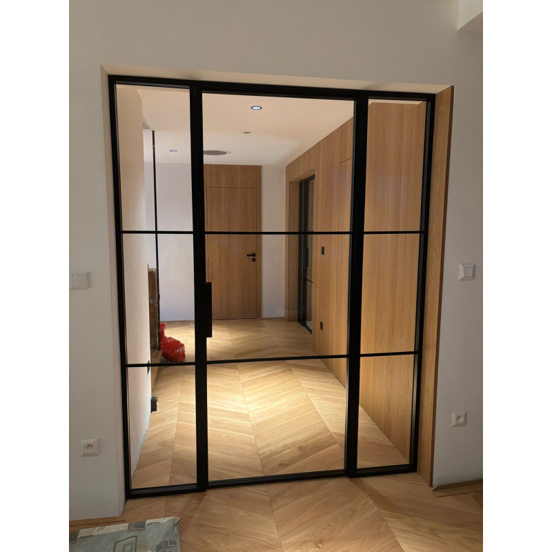 - používame vlastné subtílne hliníkové profily 12mm, hĺbka dverí 40mm, zárubeň 60x16mm s falcom a tesnením